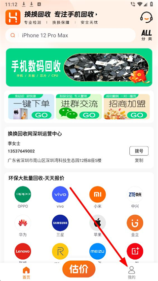 1、在换换回收app首页,点击底部导航栏我的选项,进入个人页面。