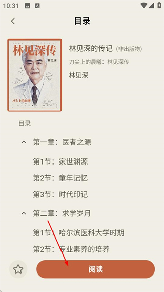 3、在传记页面,点击目标传记,可进入该传记的目录页面。