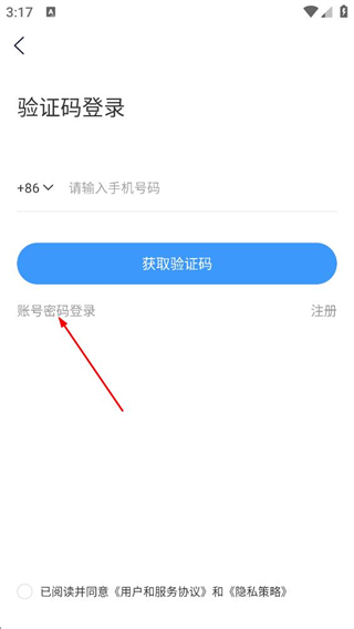 3、在登录页,点击账号密码登录选项,切换登录方式。