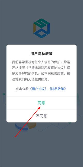 1、在使用协议隐私政策弹窗中点击同意按钮,进入登录页面。