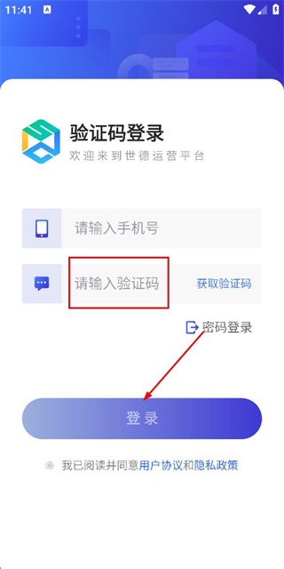 3、在验证码输入框中填写验证码,点击登录完成账号的登录操作。