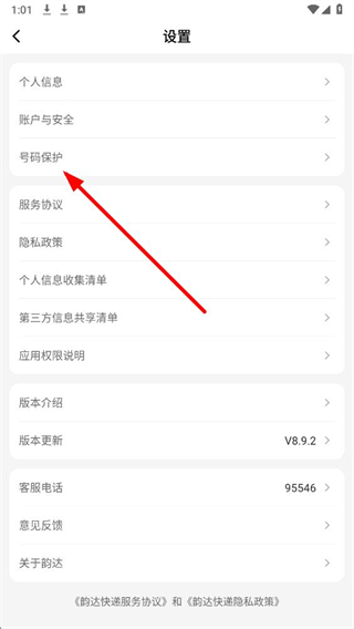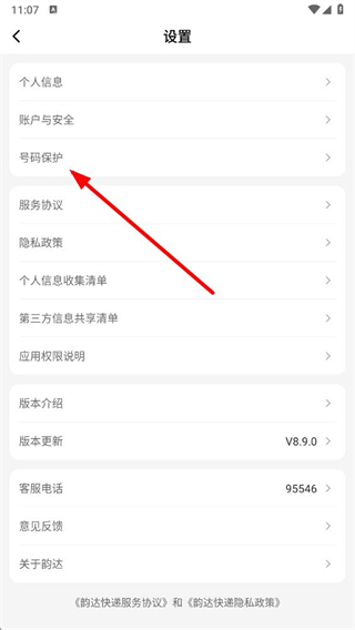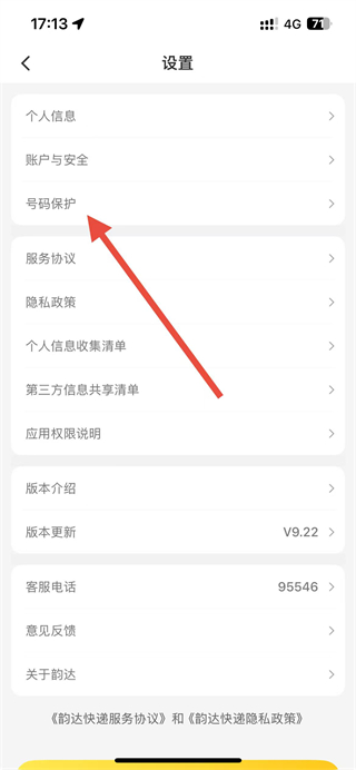 韵达快递app怎么开启号码保护