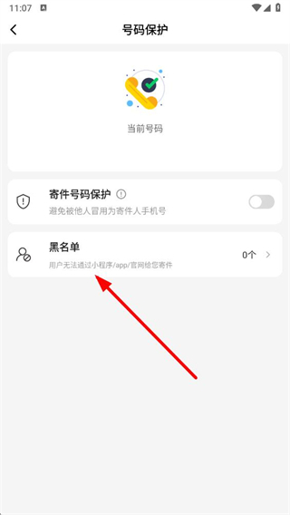 3、在号码保护页面中,找到黑名单选项并点击,进入黑名单设置的操作界面。