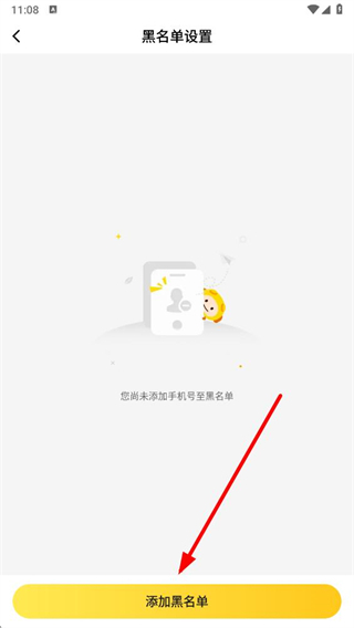 4、在黑名单设置页面下方,点击添加黑名单选项按钮。