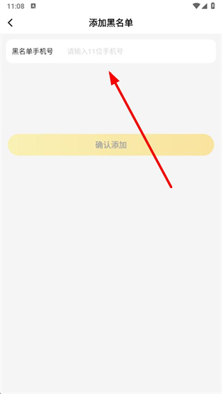 5、在输入框内输入需要拉黑的手机号,点击确认添加完成黑名单号码添加。