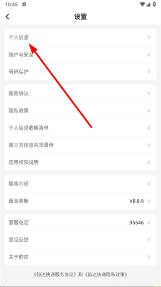 韵达快递怎么编辑个人信息