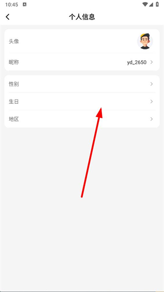 4、在个人信息界面,可对头像、昵称、性别、生日、地区等信息进行编辑修改。