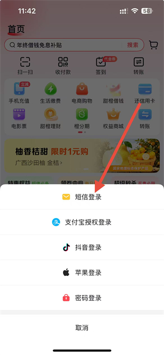 3、在更多登录方式界面,选择所需的登录类型,比如点击短信登录选项,进入对应登录信息填写页面。