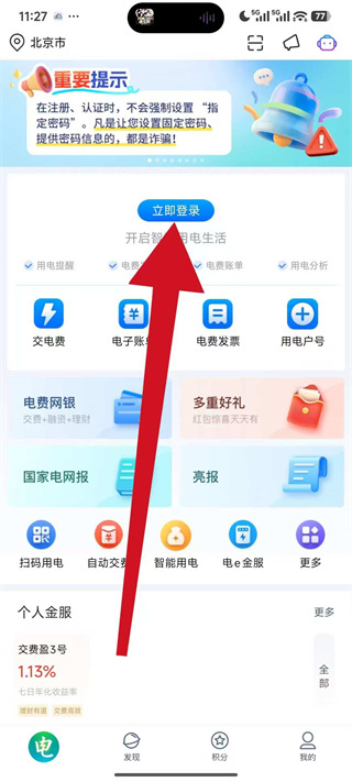 2、在首页点击立即登录,进入登录操作界面。