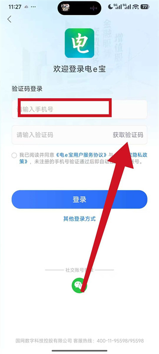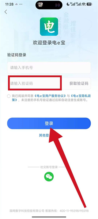 4、将收到的短信验证码填入验证码栏,勾选相关协议后,点击登录完成账号登录。