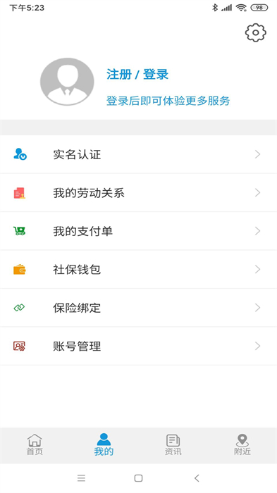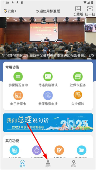 1、打开云南人社APP后,点击底部导航栏我的选项,进入对应的个人界面。