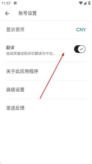 3、找到翻译选项,开启其开关,即可自动将描述和评价翻译为中文。