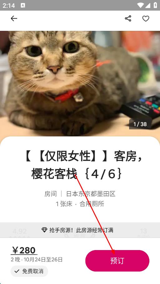 1、打开爱彼迎App,在探索页面找到你想预订的房源,点击进入房源详情页。