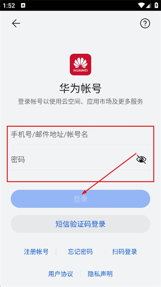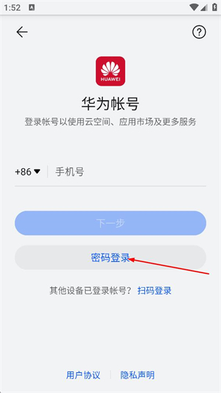 2、在欢迎页,点击立刻体验的按钮,进入华为账号登录的页面。