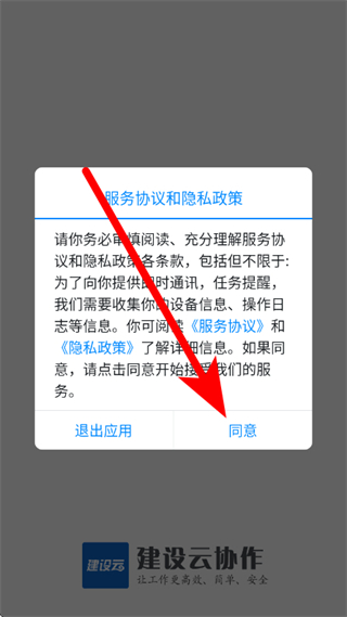 1、打开建设云,在弹出弹窗点击同意,进入登录页面。