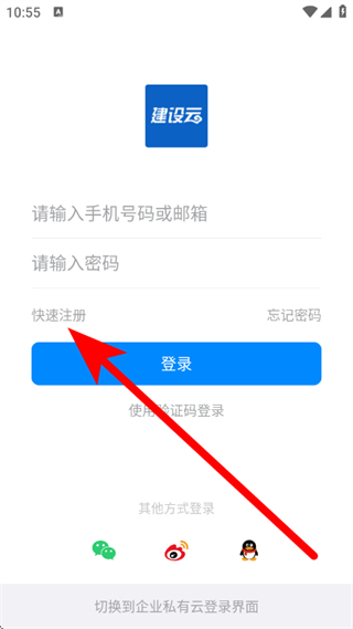 2、在登录页面,点击快速注册,进入快速注册页面。