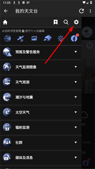 1、打开我的天文台APP后,点击界面左上角的菜单按钮,展开功能选项列表。