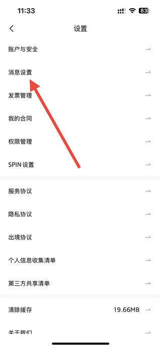 3、在设置页面中,找到消息设置选项并点击,进入消息相关的设置界面。