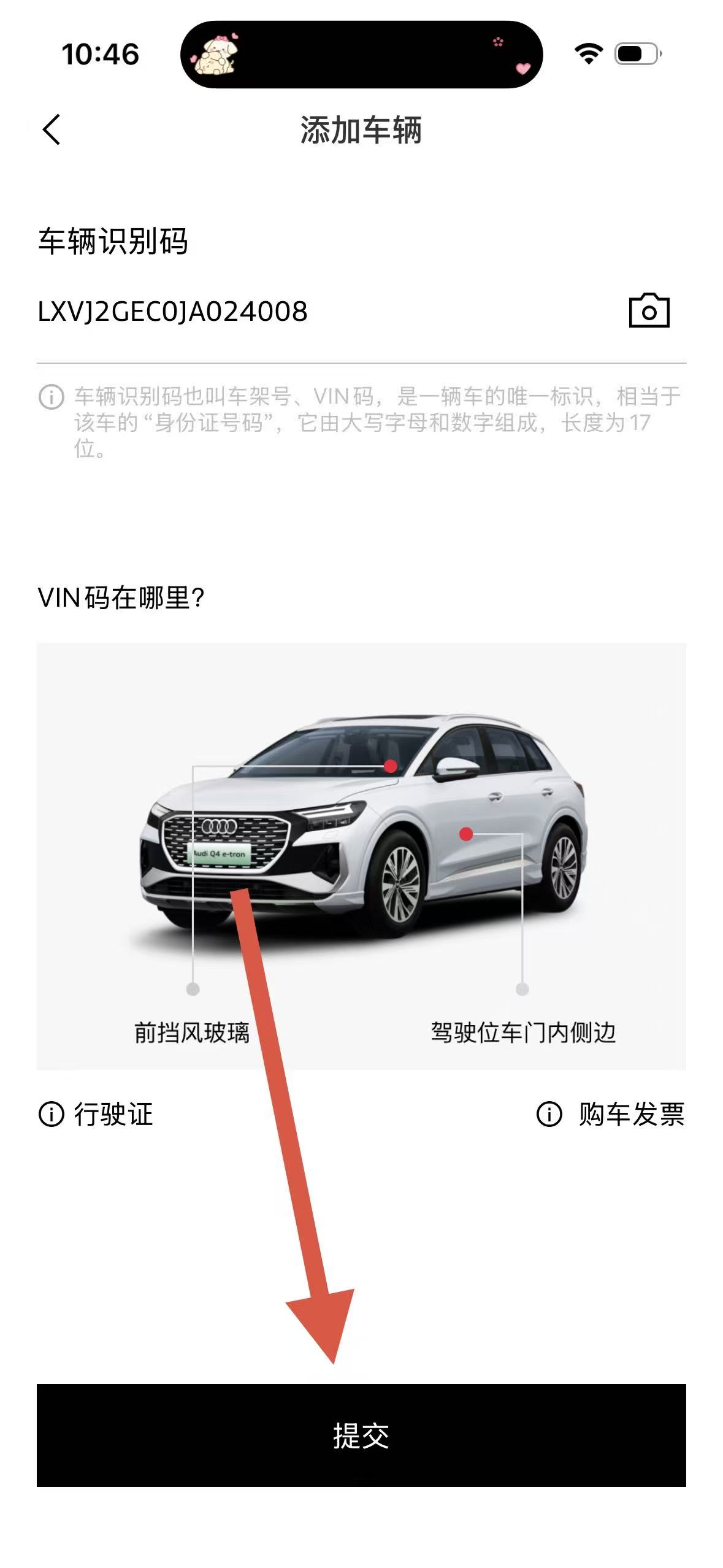4、输入完成后,点击下方提交按钮,即可完成车辆绑定操作。