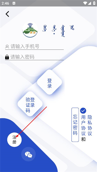 1、在登录页面,点击注册的选项,即可进入账号注册页面。