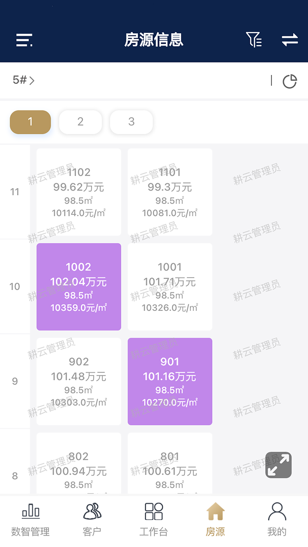 2、房源管理:清晰了解公司或项目的房源情况,通过系统化的房源管理,更好掌握项目进展,提供客户准确全面的信息服务;