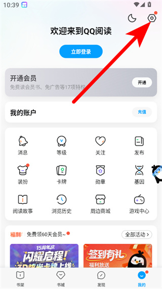 1、在QQ阅读书城页面,点击右下角我的选项,进入个人页面。
