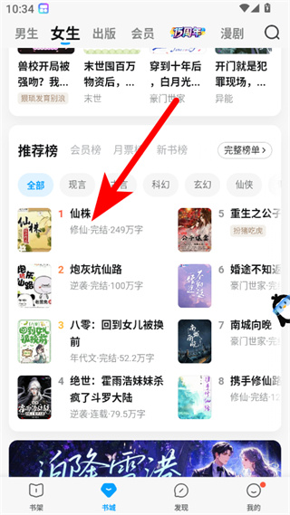 1、在QQ阅读书城页面,点击想要修改字体的书籍,进入书籍详情页面。