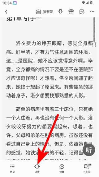 3、在阅读界面,点击下方进度选项,弹出进度调节栏。