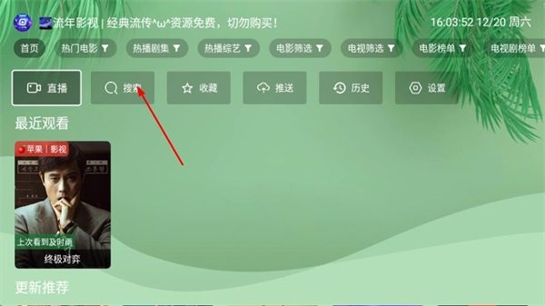 1、在流年影视首页点击搜索按钮,进入搜索输入页面。