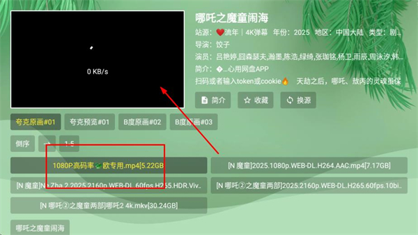 4、在播放页面选择对应画质资源,即可开始观看该影视内容。