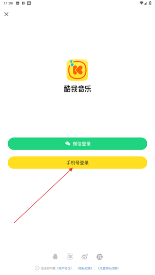 1、打开酷我音乐盒的软件,进入时点击手机号登录。