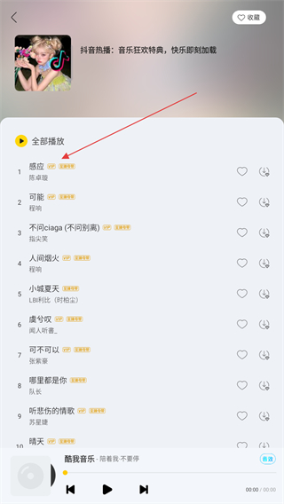 2、进入该歌单的页面内,选择并点击要播放的音乐名称。