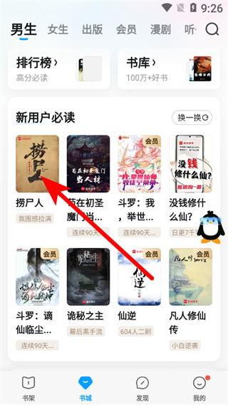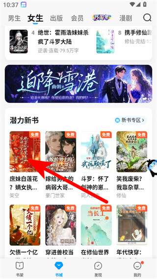 1、在QQ阅读书城页面,选择要阅读的书籍,点击进入详情页。
