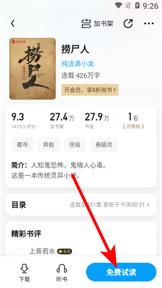 2、在书籍详情页面,点击免费试读按钮,进入书籍阅读页面。