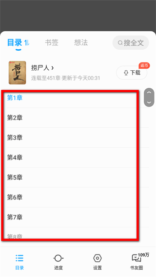 4、在目录展示页面,即可查看书籍的第1章、第2章等目录内容。