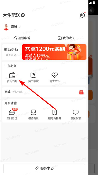 2、在功能页面的工作必备区域,找到并点击我的钱包选项,进入我的钱包页面。