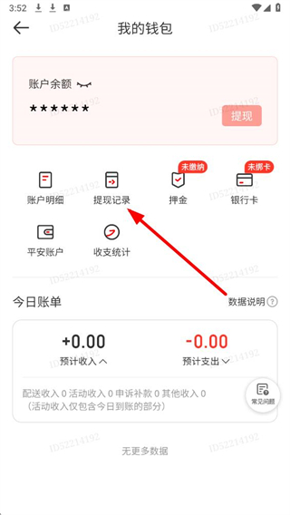 3、在我的钱包页面,点击押金选项,进入押金页面。