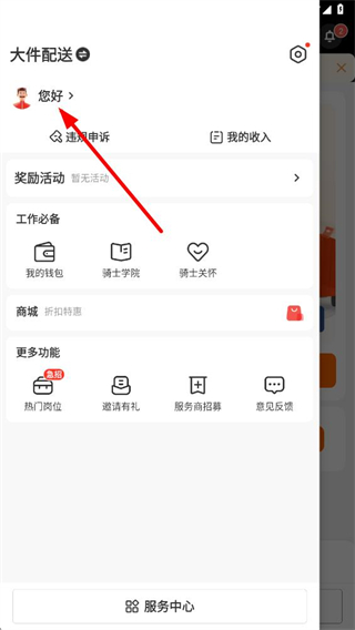 1、在京东秒送骑士app页面点击左上角的菜单图标,进入个人页面。