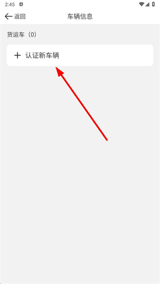 4、在车辆信息页面,点击认证新车辆按钮,按提示填写车辆相关信息并提交,完成车辆信息认证流程。