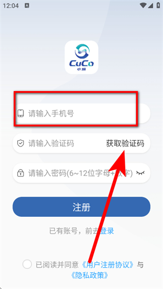 3、在注册页面,输入手机号,点击获取验证码。