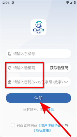 4、输入验证码,设置密码,勾选相关协议后,点击注册,完成注册。