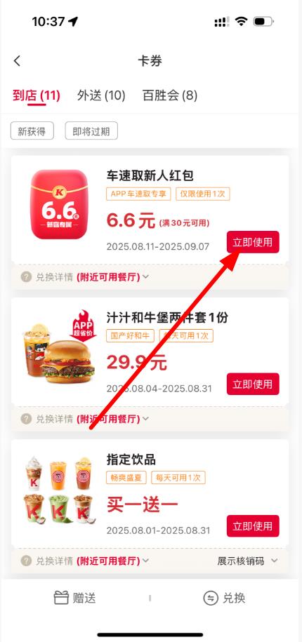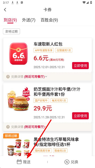 肯德基app怎么查看赠卷记录