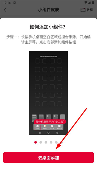 3、在小组件页面,选择想要的皮肤样式,点击对应的去添加按钮,进入添加引导流程。