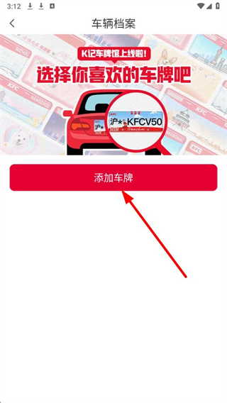 3、在车辆档案页面,点击添加车牌按钮,进入车辆信息填写页面。