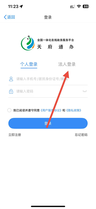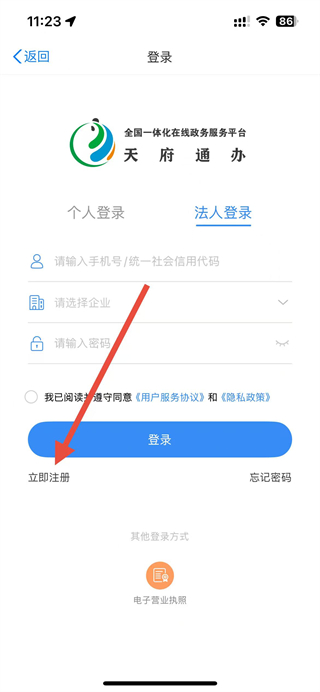 天府通办app怎么注册法人账号