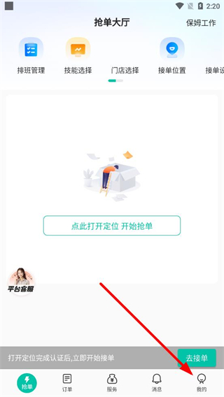 1、打开58到家工作端app,点击首页界面底部我的选项,进入个人页面。
