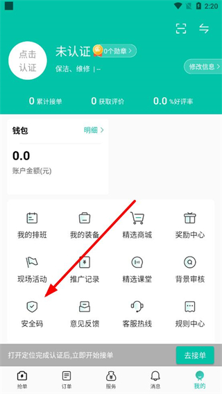 2、在我的页面中,找到并点击安全码选项,进入安全码页面。