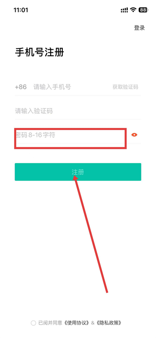 4、设置密码,完成后点击注册即可成功登录。