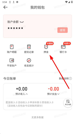 3、在我的钱包页面,选择押金选项,进入押金页面。