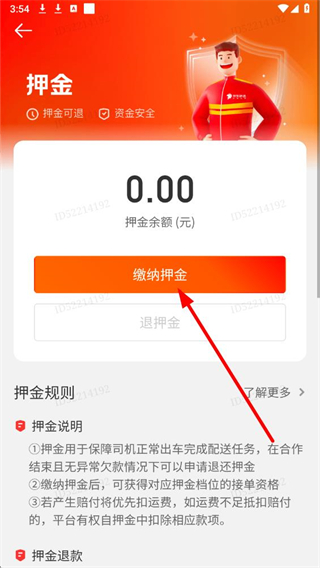 4、在押金页面,点击橙色的缴纳押金按钮,按照页面提示完成押金缴纳流程即可。